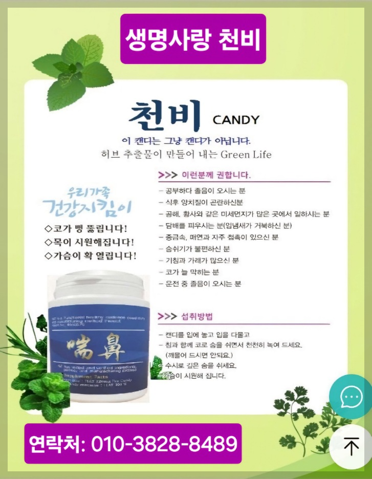 🍀친식 비염 환우 희소식 : 코와 목을 뻥 뚤리게 해준다는 "천비" 캔디