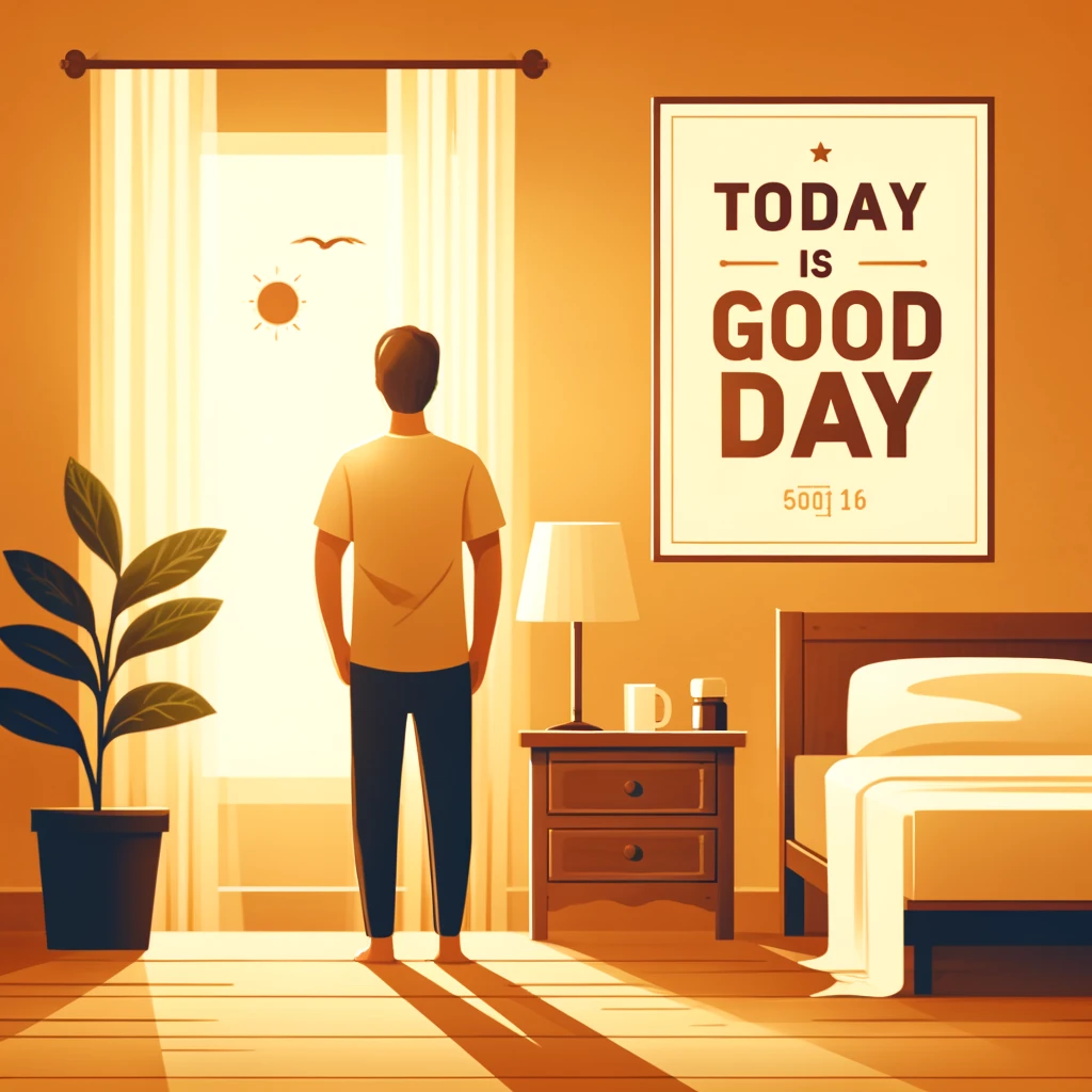 사진 1: 성품과 습관의 상징 이 사진은 한 사람이 매일 아침 일어나 긍정적인 다짐을 하는 장면을 담고 있다. 벽에는 '오늘도 좋은 하루'라는 문구가 적혀 있다. 이는 성품과 습관의 중요성을 상징적으로 보여준다.