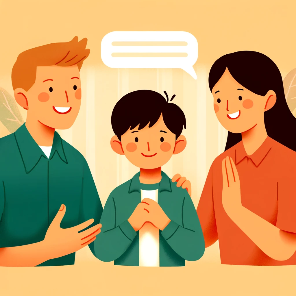 사진 3: 덕담이 만드는 변화 이 사진은 한 가정에서 부모가 자녀에게 따뜻한 덕담을 하는 장면을 담고 있다. 가족의 화목한 분위기와 자녀의 밝은 표정은 덕담이 가져오는 긍정적인 변화를 잘 보여준다.
