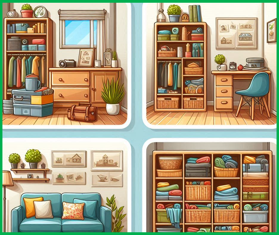 가구 사이의 빈 공간이나 벽면의 빈 공간 등을 활용하면 더 많은 물건을 수납할 수 있다. 예를 들어, 주방 캐비닛 사이의 빈 공간에 선반을 추가하거나, 침대 아래에 수납함을 두는 등의 방법이 있다.