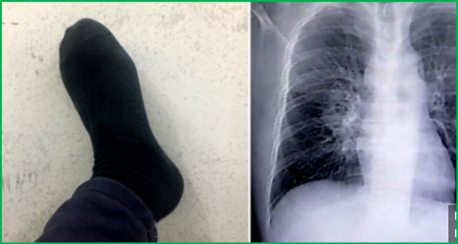 중국 장저우에 사는 37살 남성, '펑'은 퇴근 후 집에 돌아와 양말을 벗으며 냄새를 맡는 습관이 있었다. 어느 날 가슴이 조이는 듯한 통증과 심한 기침을 느낀 그는 병원을 찾았다. 장저우의 909병원 의사들은 폐렴으로 판단하고 치료를 진행하며 약을 처방하였다.