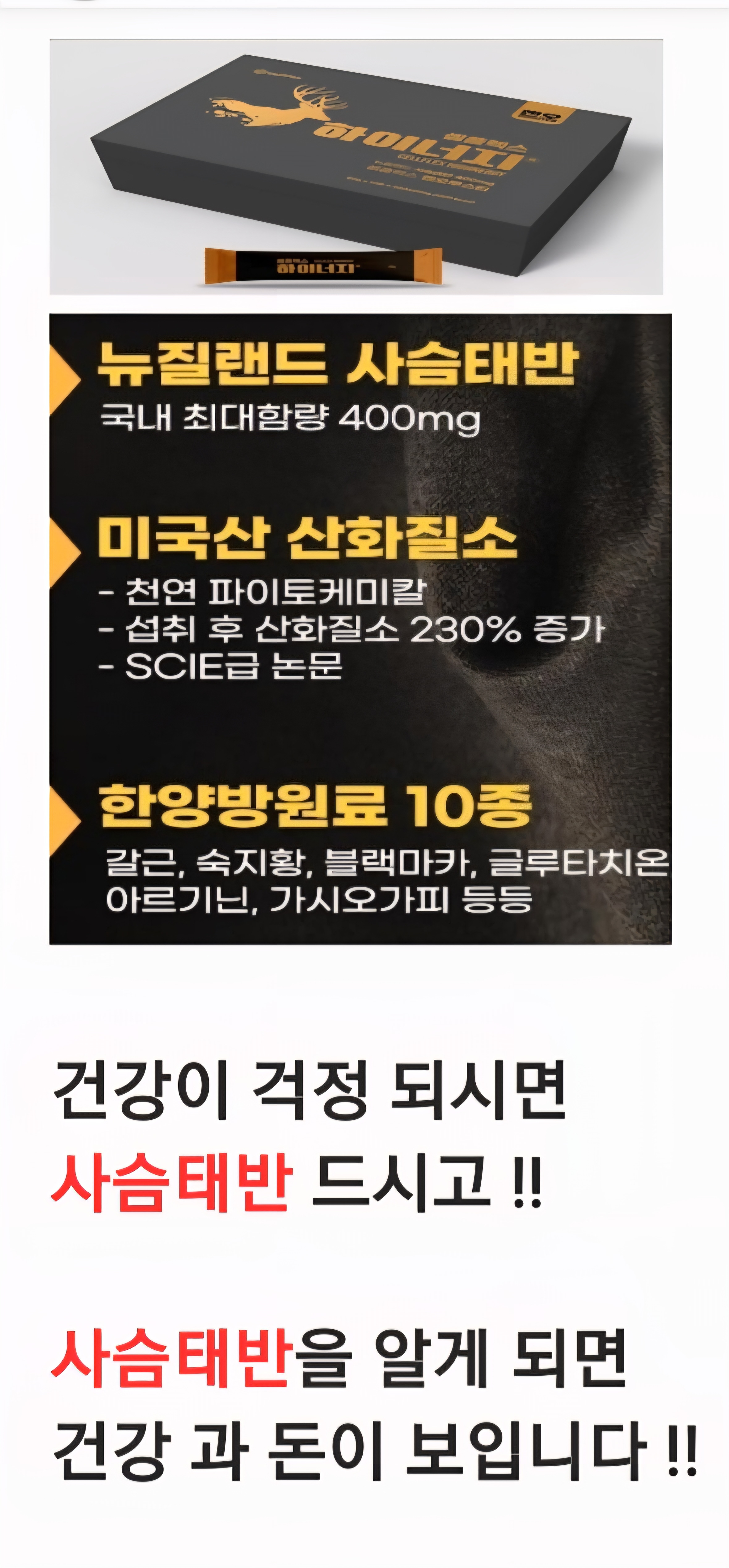 #사슴태반 #하이너지 #NO부스터 #산화질소 #L아르기닌 #시트룰린 #혈류개선 #피로회복 #피부재생 #면역강화 #운동회복 #중장년건강 #영양보충 #건강식품추천